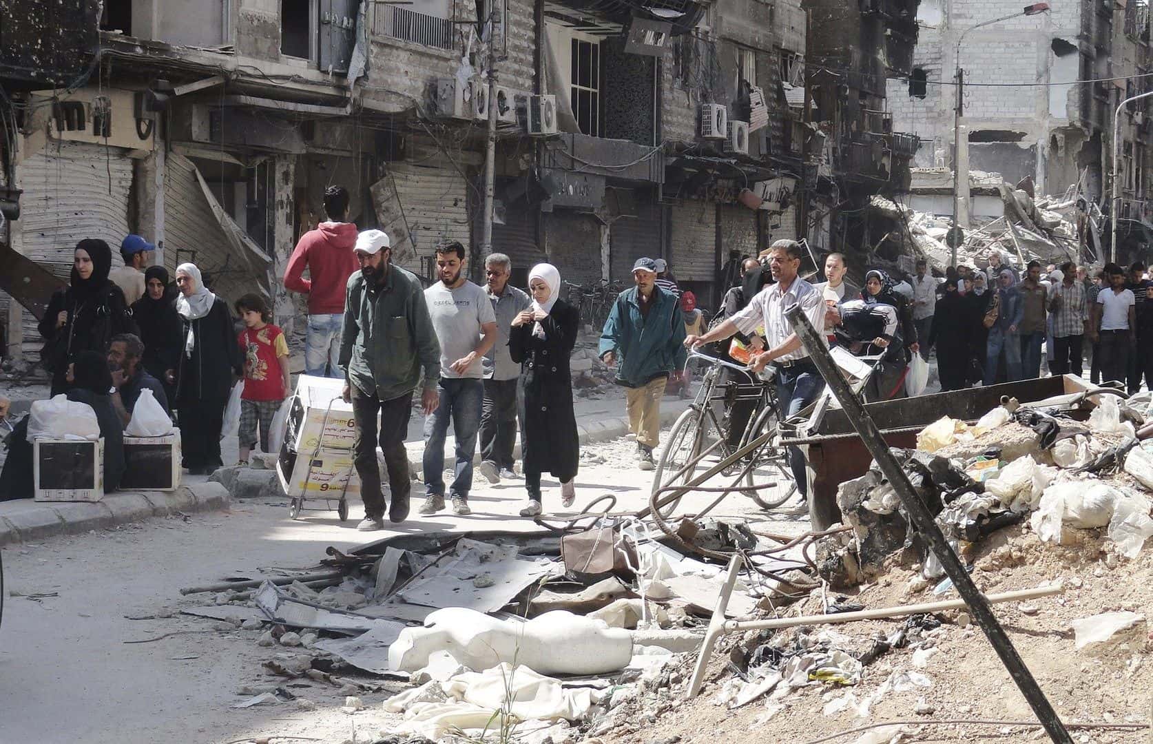 ويفرض نظام بشار الأسد حصارا خانقا على مخيم اليرموك، قطع بموجبه معظم سبل الحياة من غذاء ودواء، حتى بدأ بعض الناس يقتاتون على الحشائش، كما نقل ناشطون.
