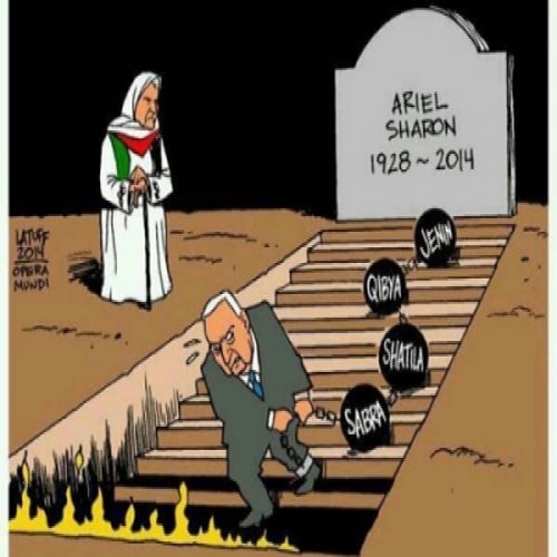 شاركها فيسبوك تويتر لينكدإن بينتيريست البريد الإلكتروني وطن _ نشر الرسام العالمى كارلوس لاتوف كاريكاتيرا جديدا اليوم بمناسبة وفاة رئيس الوزراء الإسرائيلى رصد خلاله السفاح شارون مكبلا بجرائمه بعد وفاته فى طريقه لجهنم. هيومان رايتس ووتش: نأسف لوفاة شارون قبل محاكمته على مجازره جهنم شارون كاريكاتير