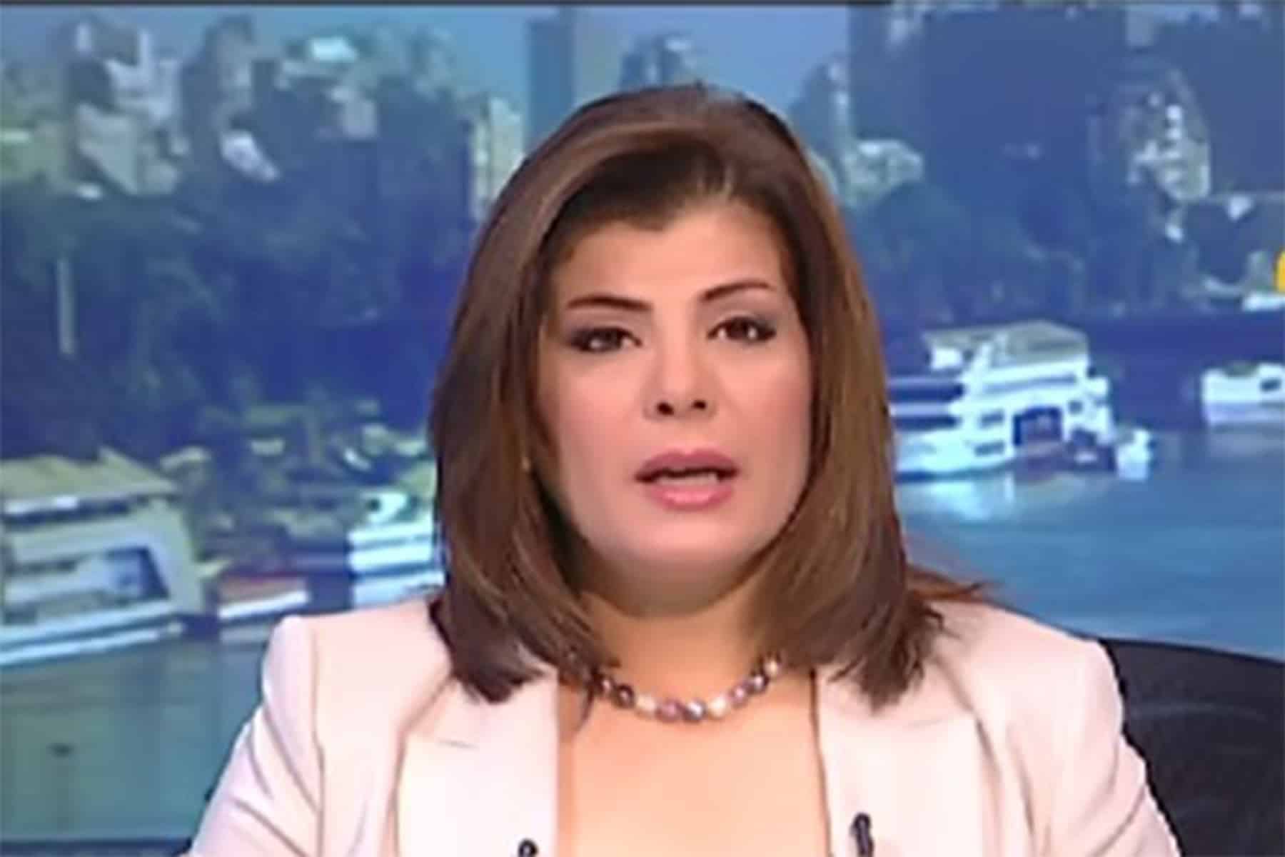 وطن _ عرض الإعلامي الساخر باسم يوسف، صورة الإعلامية أماني الخياط وهي جالسة في مؤتمر وخلفها جملة يسقط حكم العسكر