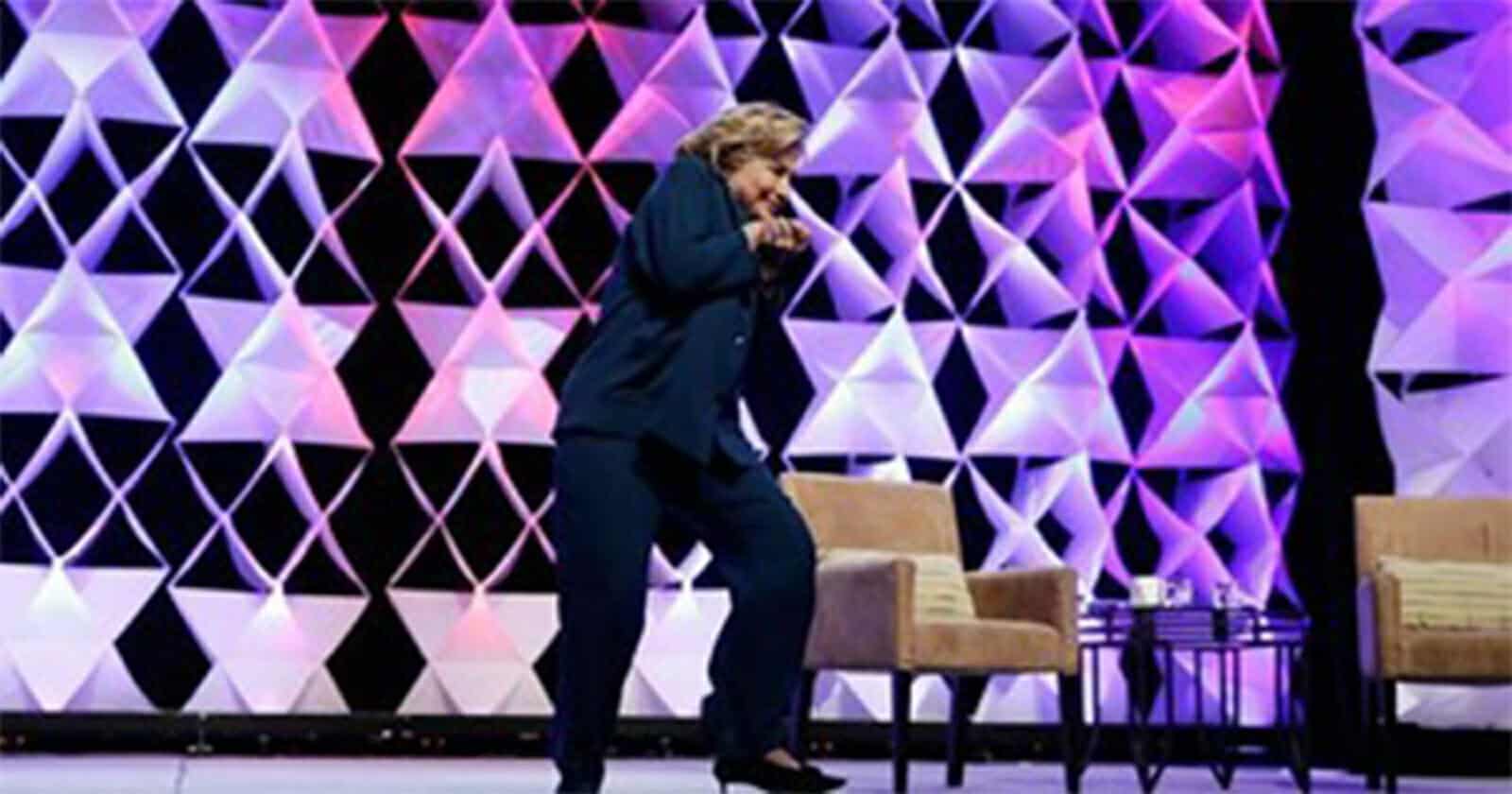 امرأة ترشق هيلاري كلينتون بحذاء خلال مؤتمر