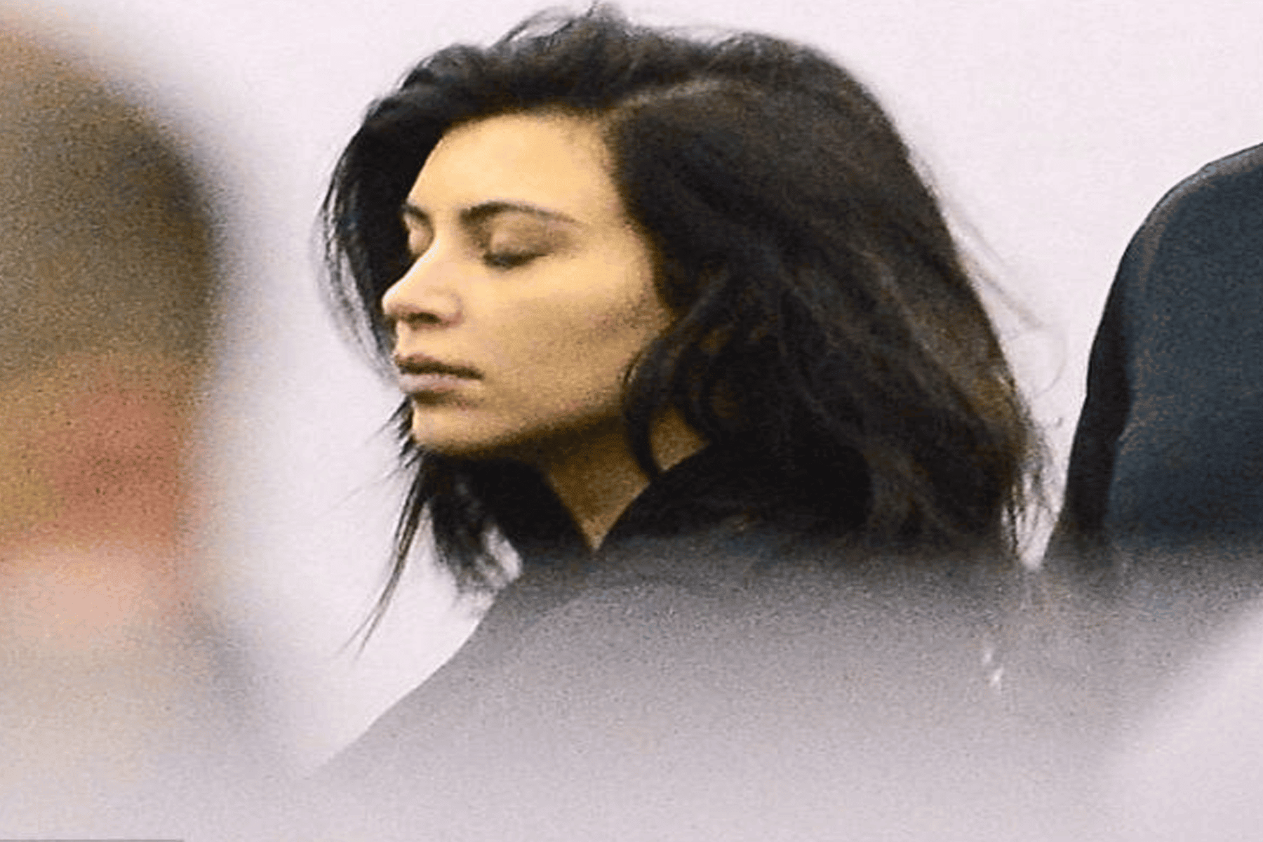 ولم تتوقف كيم عن التثاؤب وتحاول جاهدةً البقاء مستيقظةً، وكان وجهها خالٍ من الماكياج .