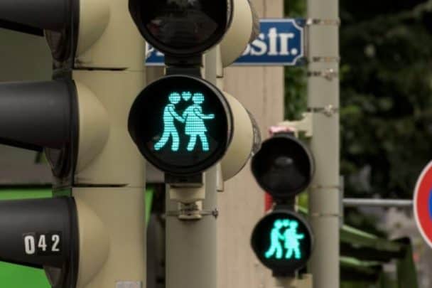 فبدلا من رسم لشخص يمشي وحده أو لا يمشي، ستظهر الأضواء امرأتين أو رجلين أو يدي زوجين من جنسين مختلفين، مع قلوب صغيرة تضيئ بينهما.