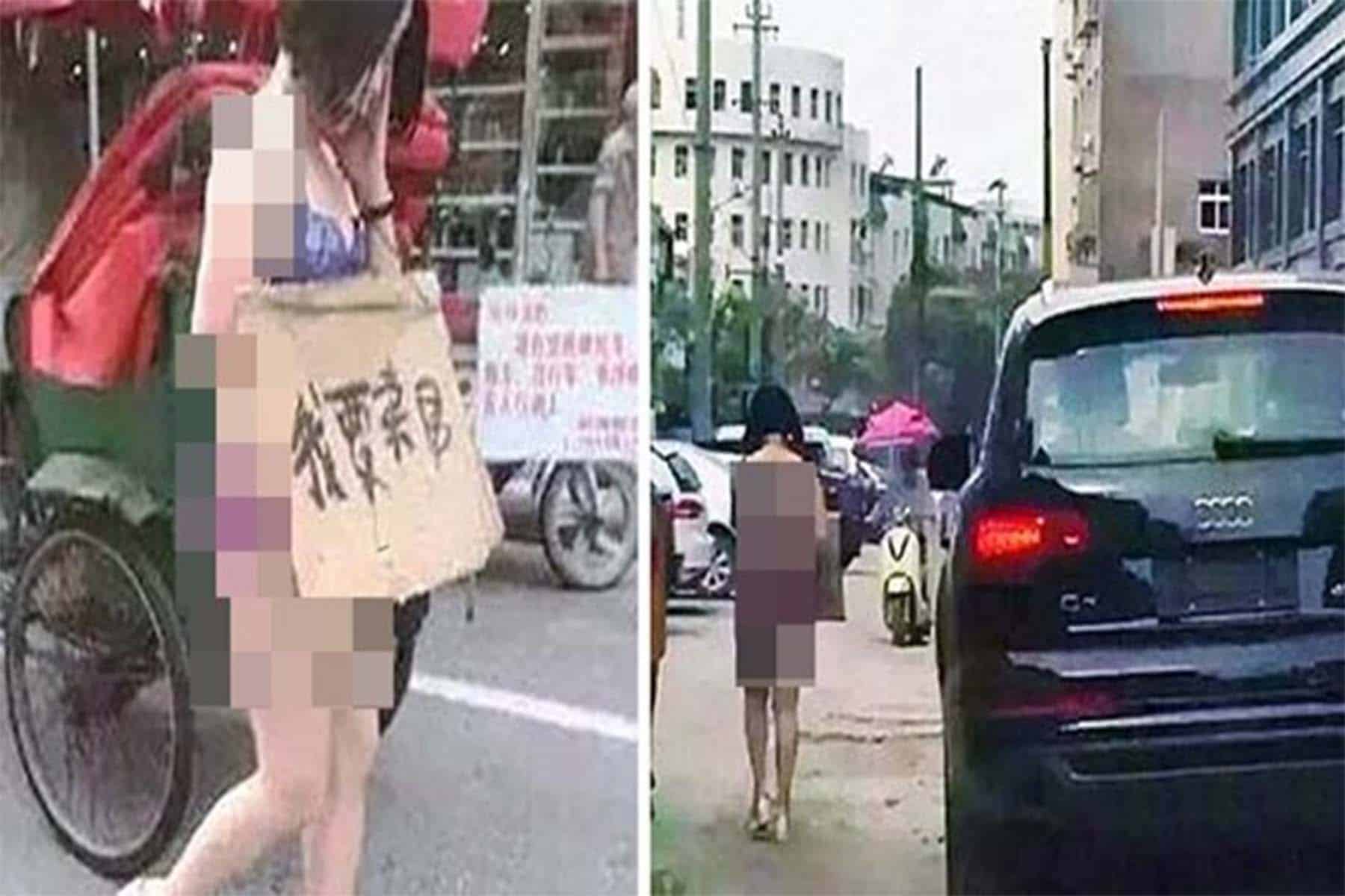 وطن _ إمرأة تسير بملابسها الداخلية في شوارع مدينة يوشان بجنوب شرق الصين، وهي تبكي منحنية الرأس، تحمل لافتة أريد أن أبيع جسدي وذلك بعد اكتشاف زوجها أنها كانت على علاقة برجل آخر بينما كان يسير خلفها بسيارته رباعية الدفع ليـتأكد من تنفيذ العقوبة بحسب صحيفة ديلي ميل البريطانية.