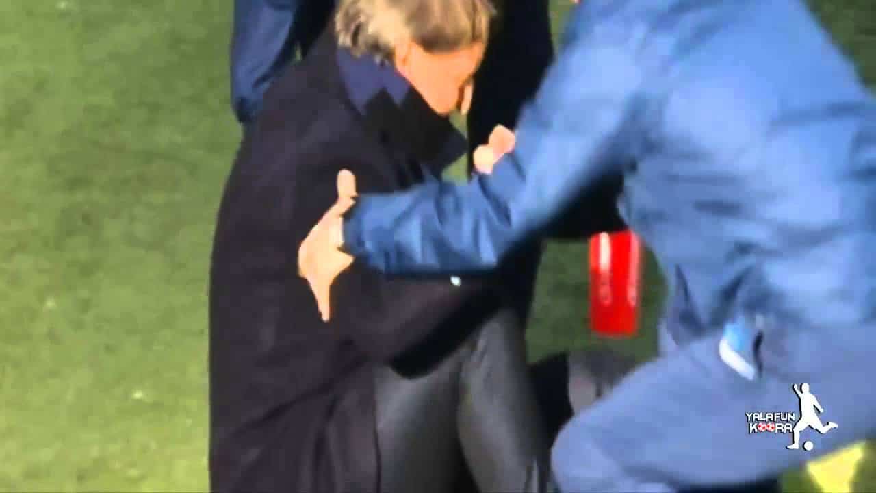 لكن المدرب “مانشيني” سقط بطريقة غريبة وطريفة أمام الجميع، ليتقدم اللاعب الصربي “أدام لياييتش” نحوه على وجه السرعة وساعده على النهوض، حيث حصدت هذه اللقطة عدداً كبيراً من المتابعين على صعيد وسائل التوصل الاجتماعي.