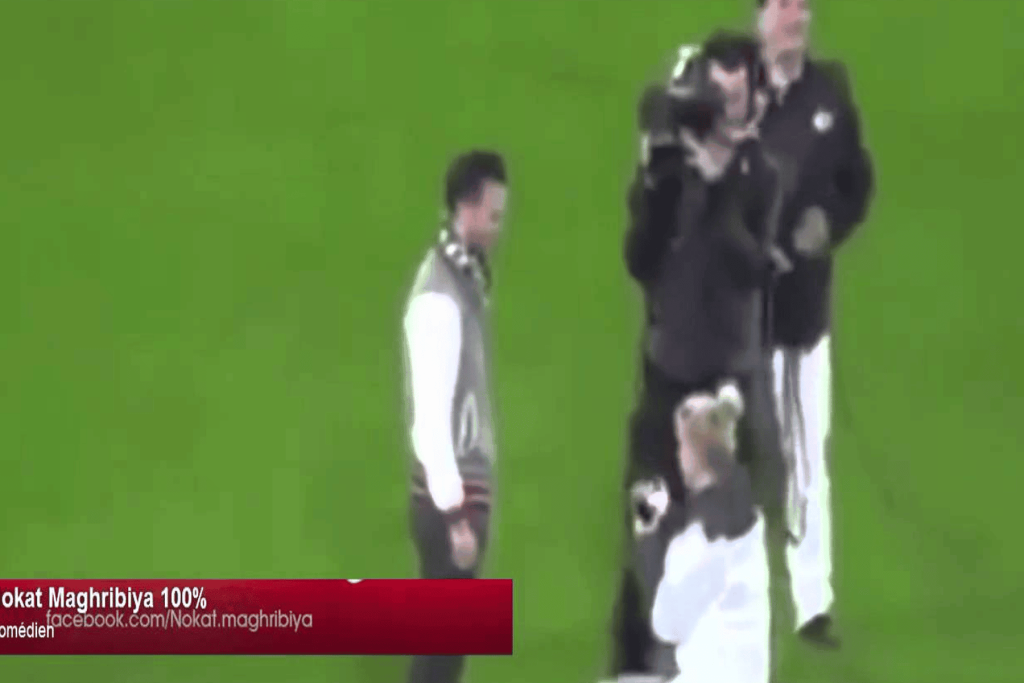 وظهرت الفتاة وهي تتحدث في الميكرفون وتطلب الزواج من شاب، ثم جثت على ركبتيها وأخرجت علبة بها خاتم الزواج ولكن رفض الأخير وفر هاربا من الملعب وسط صيحات وضحكات الجمهور.