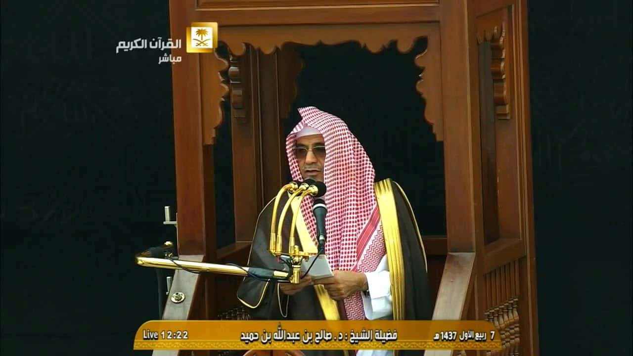 ثمن إمام وخطيب المسجد الحرام الشيخ صالح بن عبد الله بن حميد الخطوة التي قامت المملكة العربية السعودية من إنشاء التحالف الإسلامي العسكري لمحاربة الإرهاب واصفا إياها بأنها عاصفة حزم جديدة.