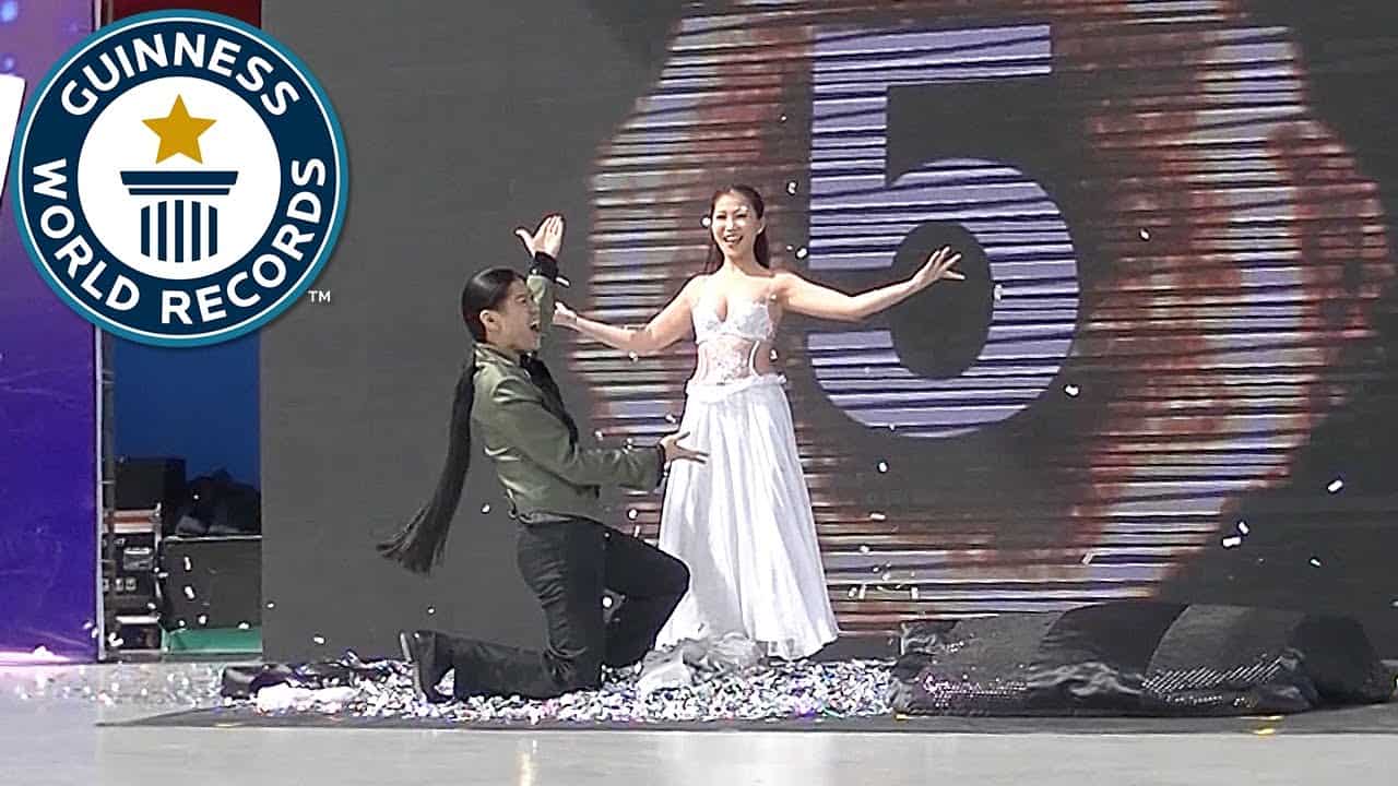 فتاة ماليزية تدخل جينيس بعد تغيير 19 ثوبًا في دقيقة واحدة مع شريكها
