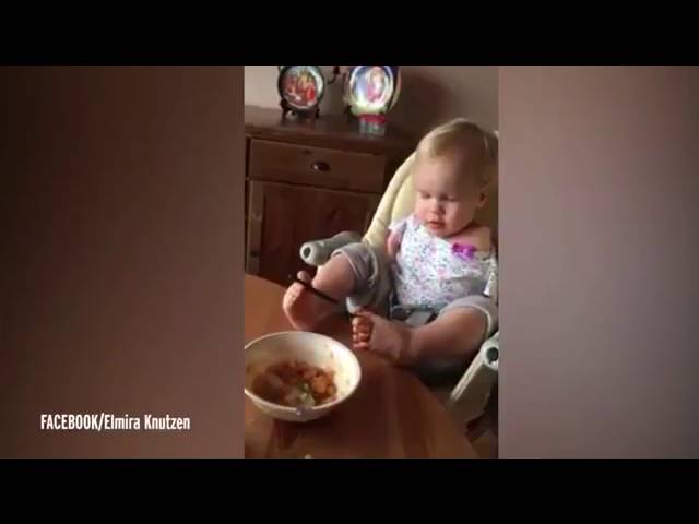 نشرت إلميرا كنوتزين مقطعاً مصوراً لطفلتها فاسينيلي وهي تغرف الطعام بملعقة من صحنها باستخدام قدمها وتتناوله. وقامت الطفلة بعدة محاولات قبل أن تنجح في إيصال الملعقة إلى فمها في نهاية المطاف.