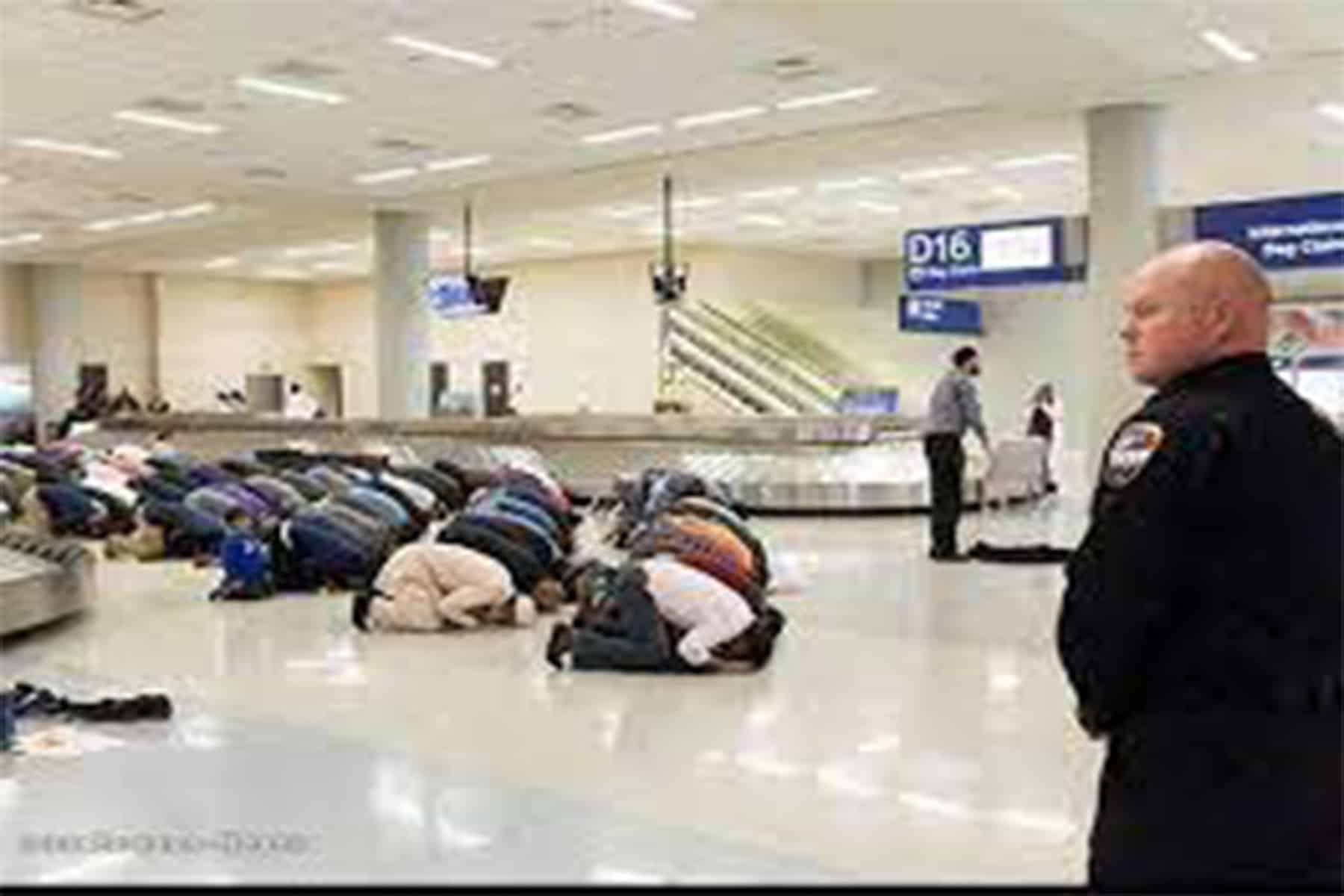 وطن _ تداول رواد مواقع التواصل الاجتماعي مجموعة من الصور والفيدوهات لصوت الأذان في مطارات أمريكا ، وجماعات من المسلمين يصلون فيها ، ردا على النزعة العنصرية التي تسبب ترامب في إشعال جذوتها ضد المسلمين.