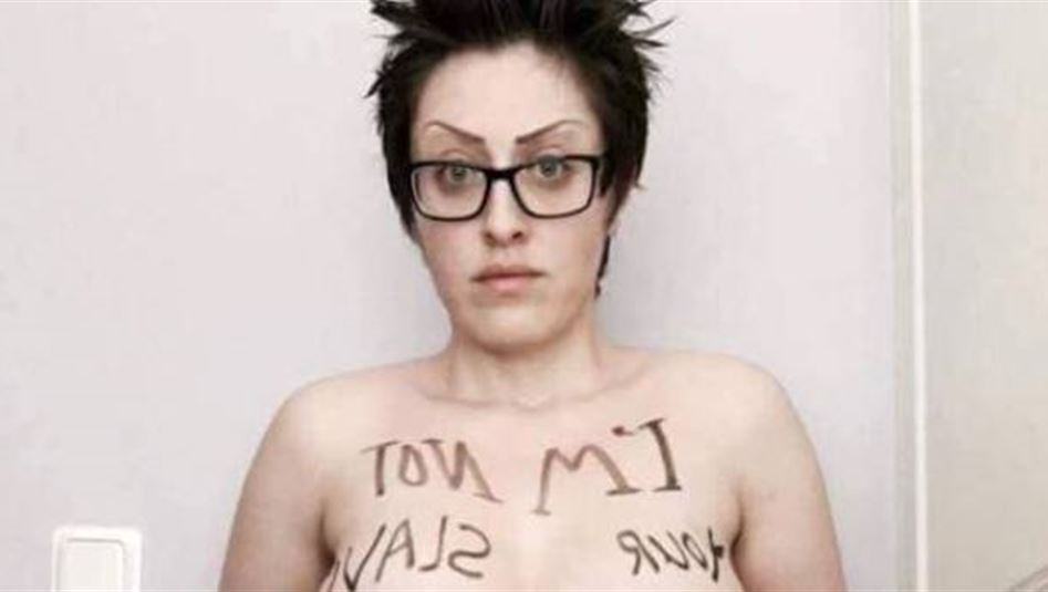 وظهرت الفتاة في الصورة شبه عارية وقد كتبت على صدرها عبارة “Im Not Your Slave” (أنا لستُ عبدتك).
