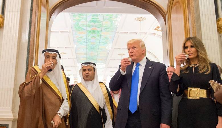 ونشرت قناة الإخبارية السعودية الرسمية مقطع الفيديو الذي حمل عنوان “خادم الحرمين الشريفين يشرح لترامب تقاليد تناول القهوة العربية” حيث يظهر العاهل السعودي ممسكًا بفنجان قهوة عربية تعرف بها السعودية ومنطقة الخليج بشكل عام، ويحرك يده في إيماءة لترامب حول تقاليد الإمساك وتحريك الفنجان.