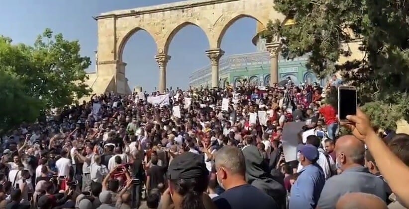 تظاهرة في المسجد الاقصى بعد صلاة الجمعة تنديدا بإساءة ماكرون للإسلام watanserb.com