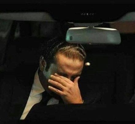 صور لسعد #الحريري يبكي في السيارة اللتي أقلته قبل أو بعد تقديم إستقالته يرتدي البزة نفسها عند قرائته بيان الإستقالة👇