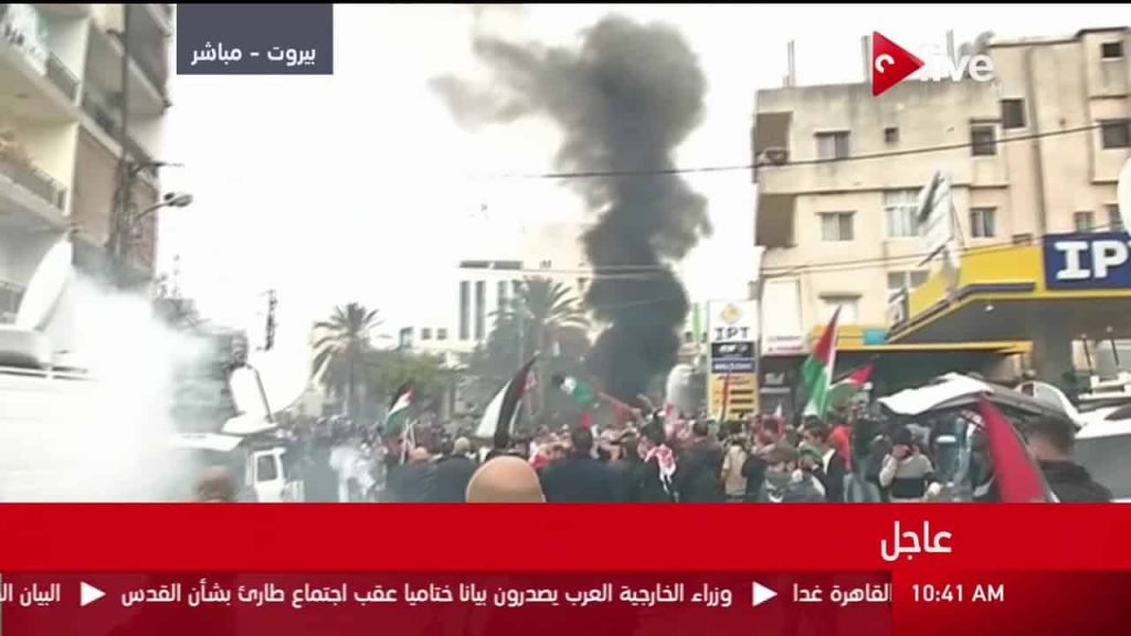 وحاول المتظاهرون اللبنانيون اقتحام مبنى السفارة الأمريكية اعتراضًا على قرار “ترامب”.