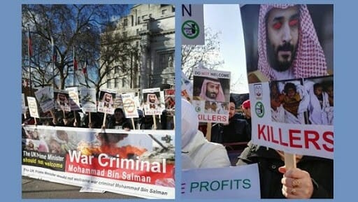 ولي العهد السعودي محمد بن سلمان يبدأ زيارة إلى بريطانيا وسط موجات احتجاج حقوقية منددة بدور #السعودية في الحرب اليمنية التي أودت بحياة الآلاف وتجويع الملايين.