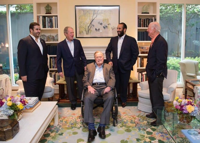 نشرت وسائل إعلام سعودية صورا أظهرت ولي العهد السعودي محمد بن سلمان، داخل منزل “آل بوش” حيث التقى الرئيسين الأمريكيين الأسبقين جورج بوش الأب وجورج بوش الابن، في منزلهما بمدينة هيوستن الأمريكية في زيارة غامضة لم تعلن تفاصيلها.