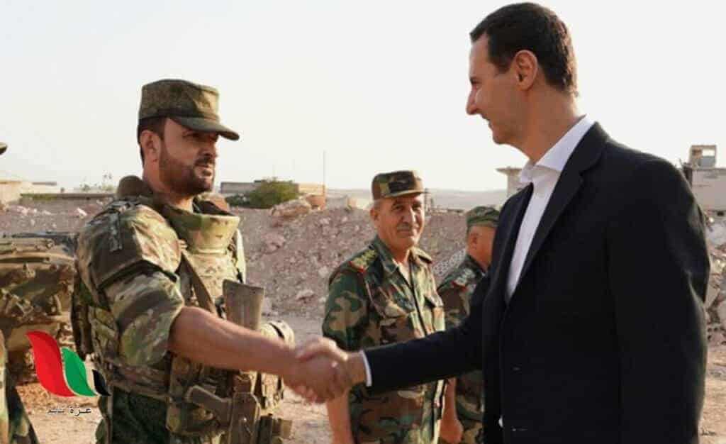 ورد عليه عناصر ميليشياته وضباطه “الله يحميك يا سيدي”، كما رددوا هتافات تمجد بشار الأسد.