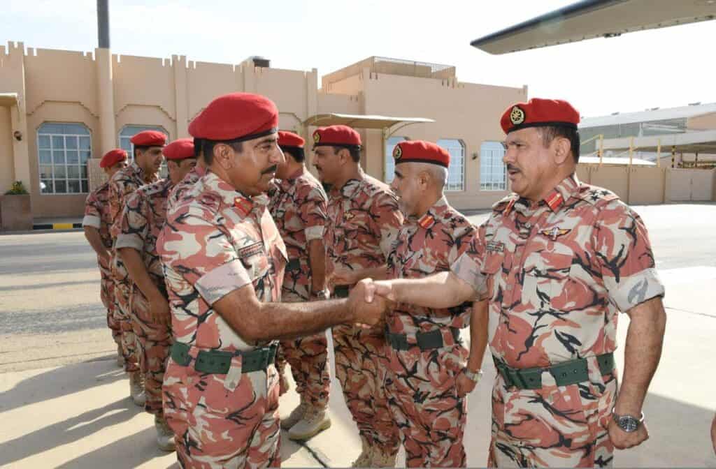وكان في وداعه لدى مغادرته قاعدة السيب الجوية العميد الركن سالم بن خويطر المقبالي كبير ضباط الأركان والعميد الركن راشد بن سعيد الشافعي مدير عام الإدارة والقوى البشرية بالجيش السلطاني العماني.