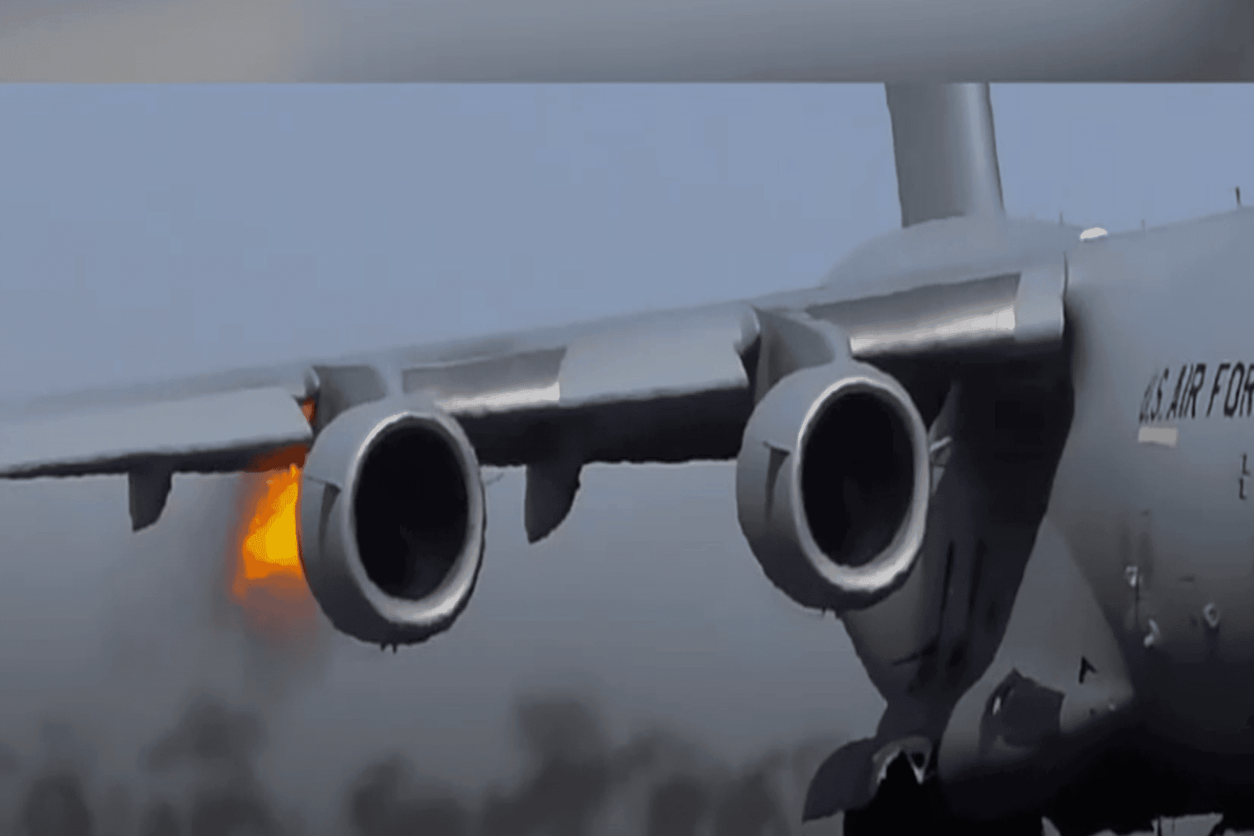 فيديو| حدث غير اعتيادي تتعرّض له أضخم طائرة عسكرية أمريكية لدى هبوطها بقاعدة عسكرية!