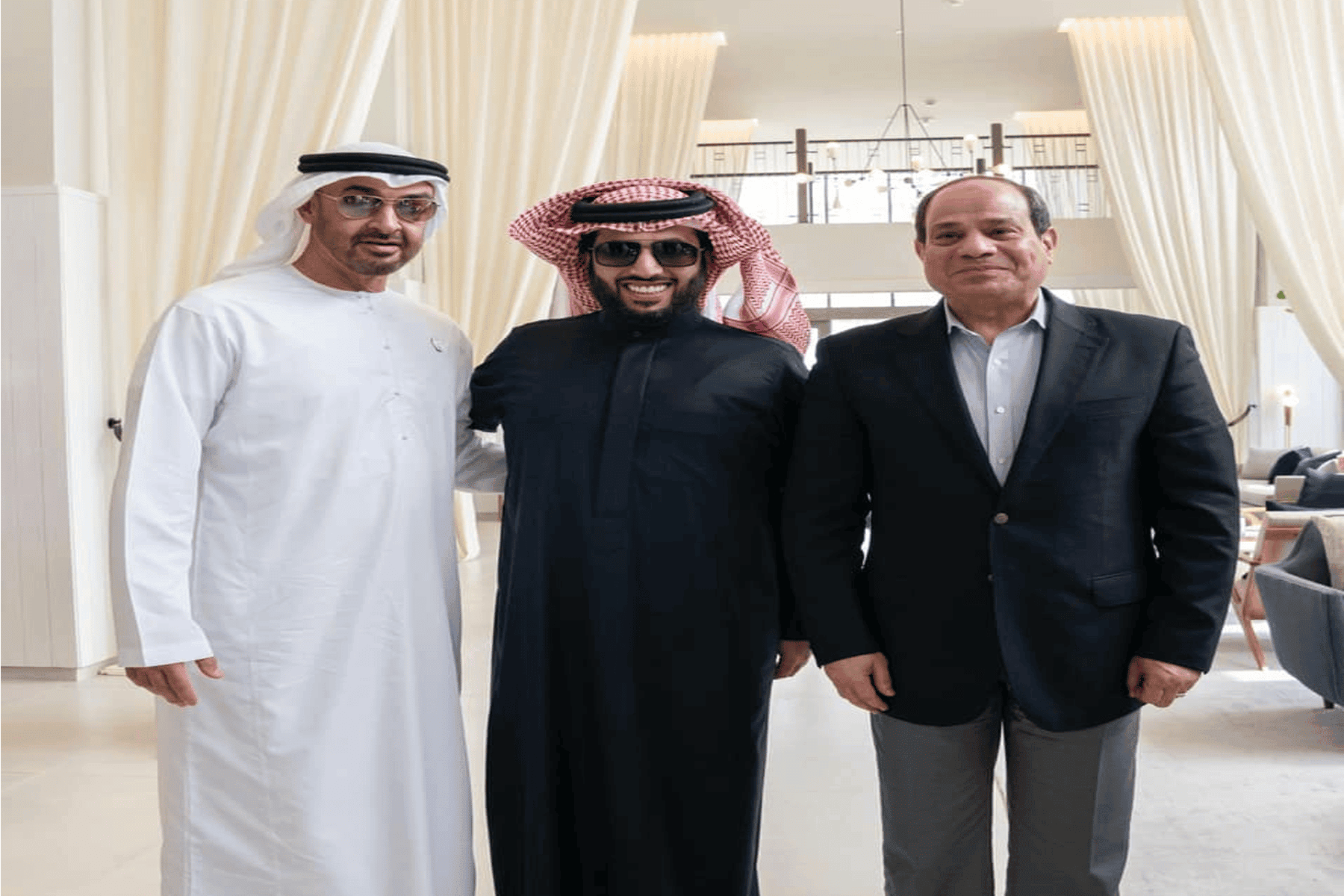 “آل الشيخ” نشر على صفحته بفيس بوك صورة تجمعه بالسيسي وابن زايد، وعلق عليها بعبارة قام بحذفها سريعا بعدها بدقائق مع أثار جدلا واسعا بين متابعيه.