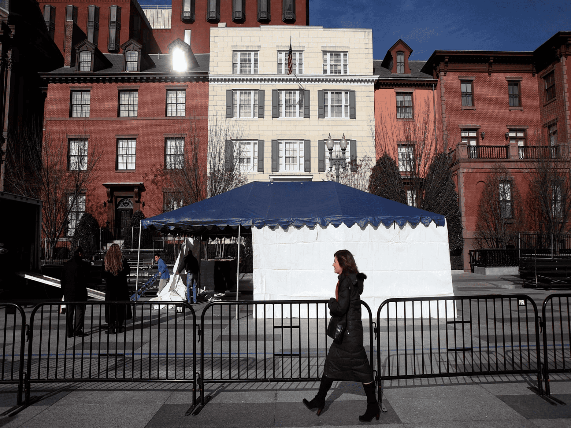 ونشر الناشط المصري الأمريكي نائل الشافعي، فيديو وصول السيسي واصفاً الأمر بالغريب الذي لم يحصل من قبل قائلاً (من هم مرافقو السيسي في إقامته في قصر الضيافة ،بلير هاوس، في واشنطن والذين تطلب وصولهم إخفاؤهم في خيمة نصبت حول سيارته لدى وصولها وتُفضي إلى سلم مغلف بالستائر إلى القصر، المشهد مثير للتساؤل ).