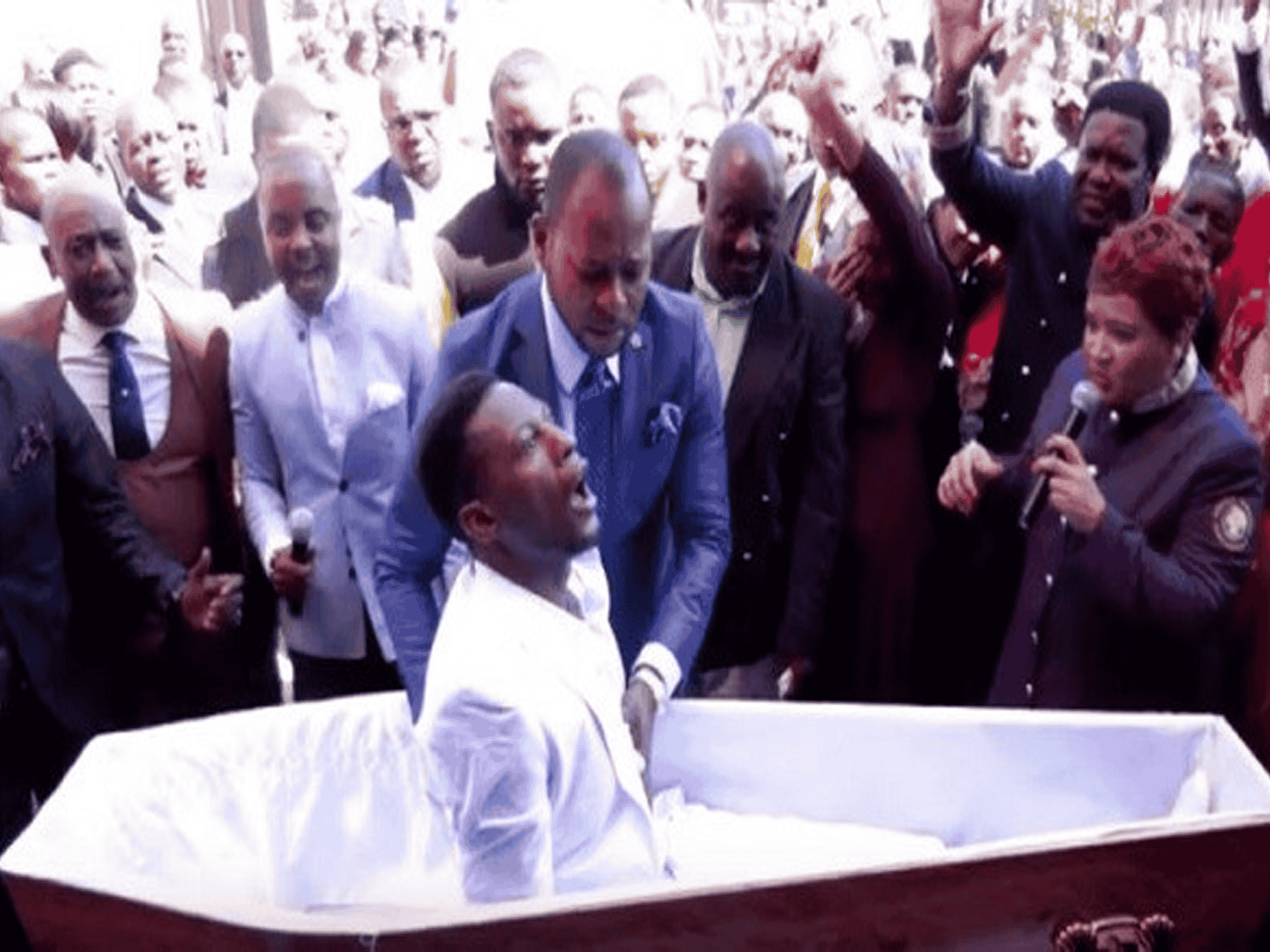 وكان “مويو” قد اشتهر على نطاق واسع على وقع “المعجزة” التي قام بها قس جنوب إفريقي، يدعى، ألف لوكاو، في “Alleluia Ministries”، في مدينة جوهانسبورغ، والتي “أيقظ فيها مويو من موته” المزعوم خلال جنازة رسمية نظمت له.