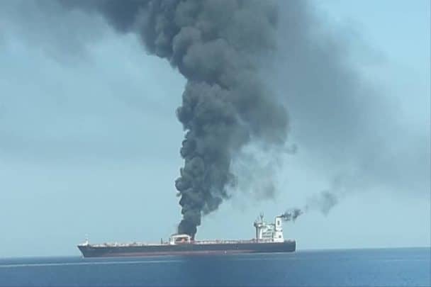 ? نخستین تصاویر از انفجارهای صورت گرفته در نفتکش ها در دریای عمان#انفجار_ناقلتي_نفط_ببحر_عُمان pic.twitter.com/cHjMA762lQ