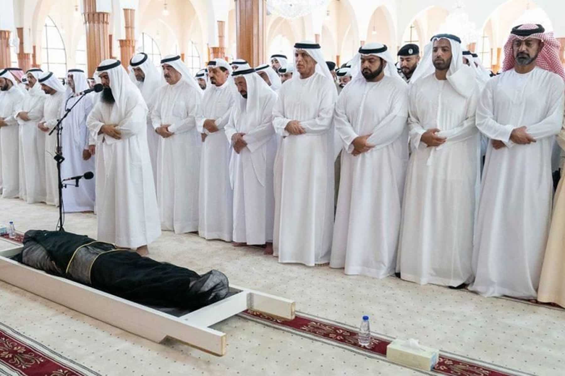 وبينما غاب بن زايد وبن راشد عن التشييع وصلاة الجنازة، حضرها الى جانب والد المتوفي حكام عجمان وأم القيوين ورأس الخيمة.