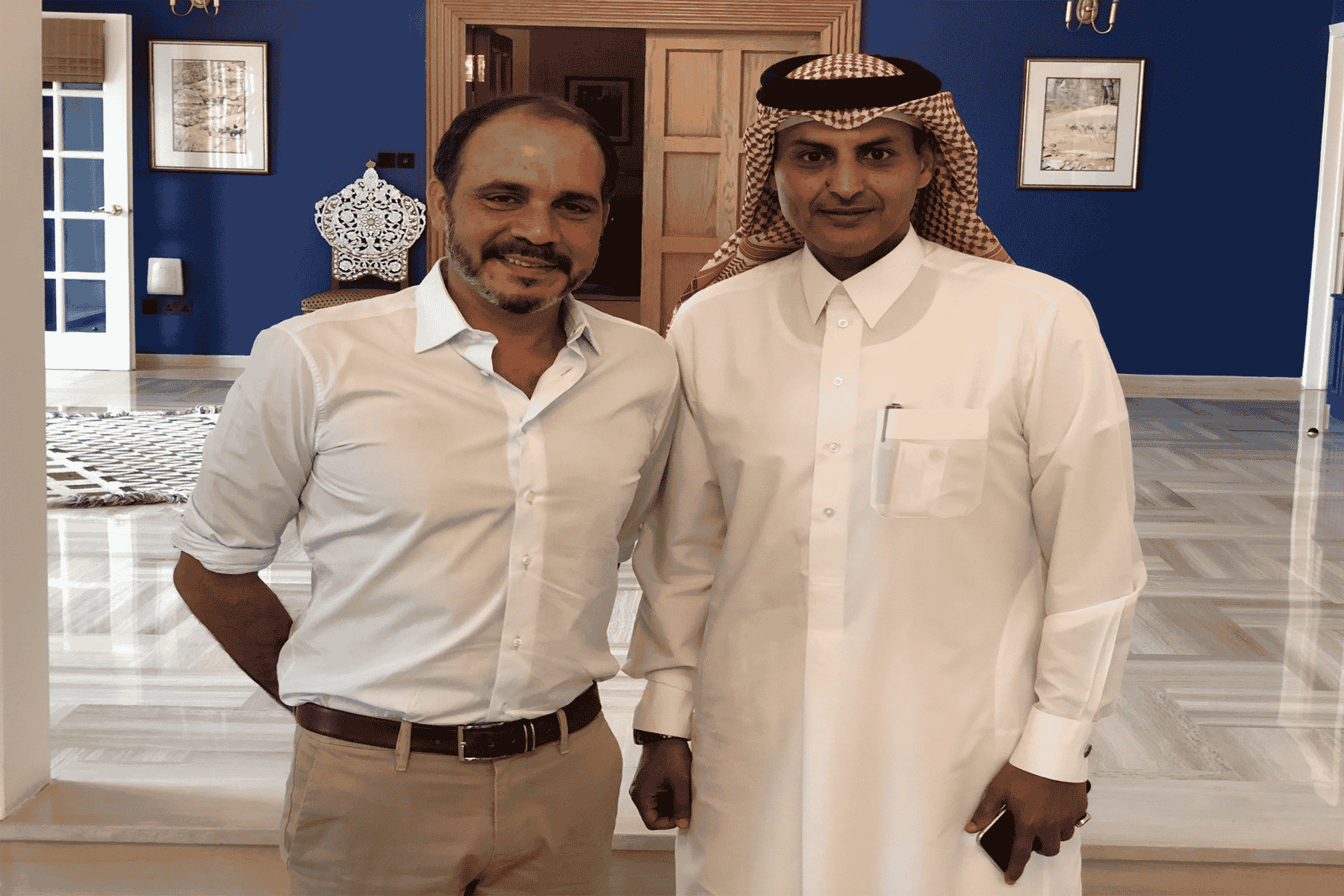وطن- نشر الأمير الأردني علي بن الحسين، رئيس اتحاد غرب اسيا لكرة القدم، صورة جمعته بسفير دولة قطر الجديد في عمّان الشيخ سعود بن ناصر بن جاسم آل ثاني.