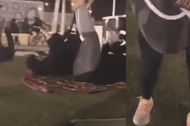 وتنمرت مصورة الفيديو على فتيات كن يشاهدن ما يحدث لأنهن محجبات ووصفتهنّ بـ”النينجا”.