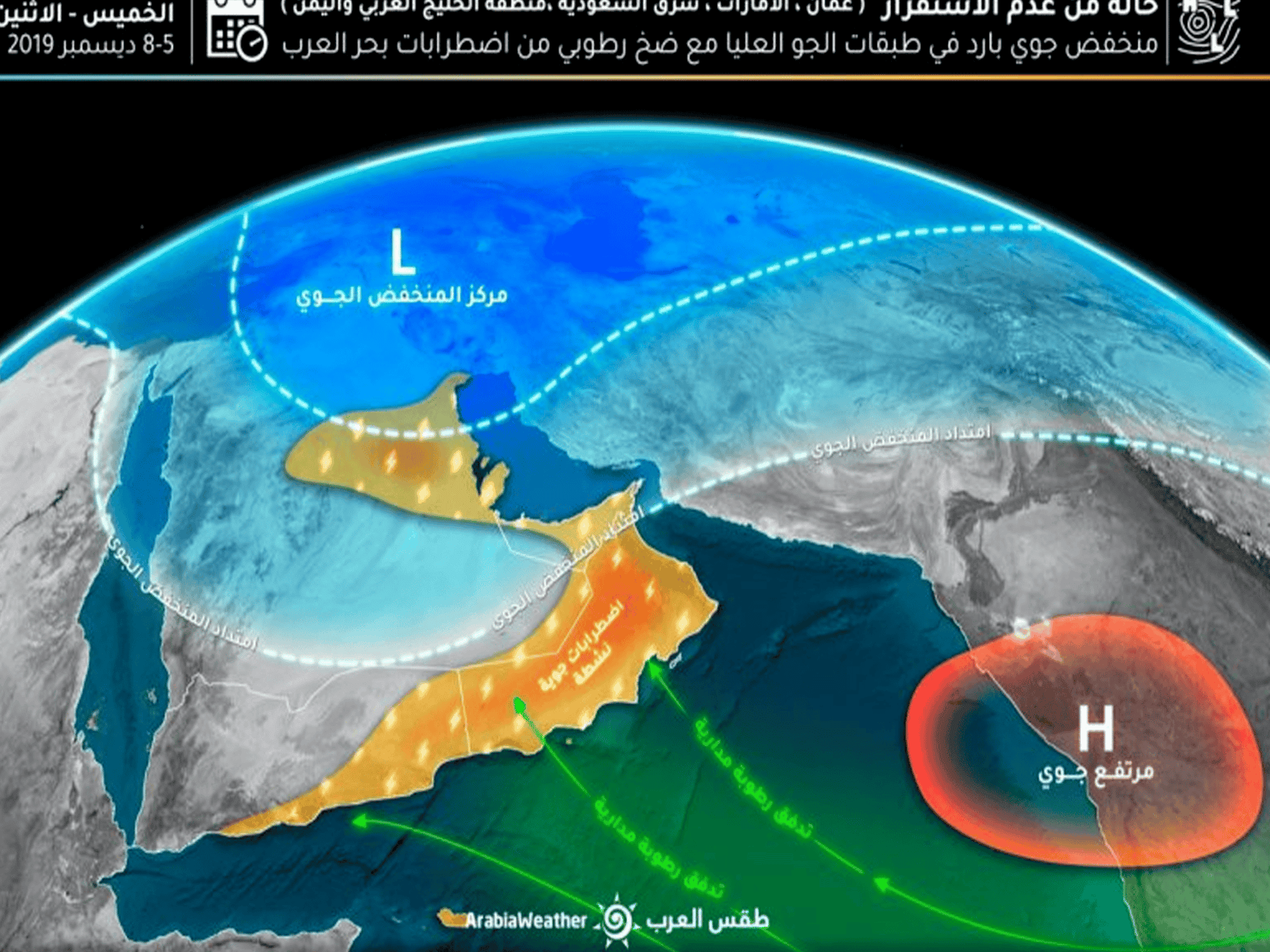 وأصدرت الهيئة العامة للطيران المدني التقرير رقم 3 عن الأخدود الذي يؤثر على السلطن، خلال الفترة المقبلة، حيث أكدت أن آخر تحاليل المركز الوطني للإنذار المبكر من المخاطر المتعددة تشير إلى استمرار احتمالية تأثر أجواء السلطنة بإخدود من منخفض جوي إلى يوم الثلاثاء المقبل.