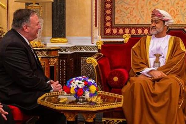 وكانت آخر زيارة للوزير بومبيو للسلطنة في شهر يناير من عام 2019م حيث التقى خلالها بالسلطان قابوس ببيت البركة.