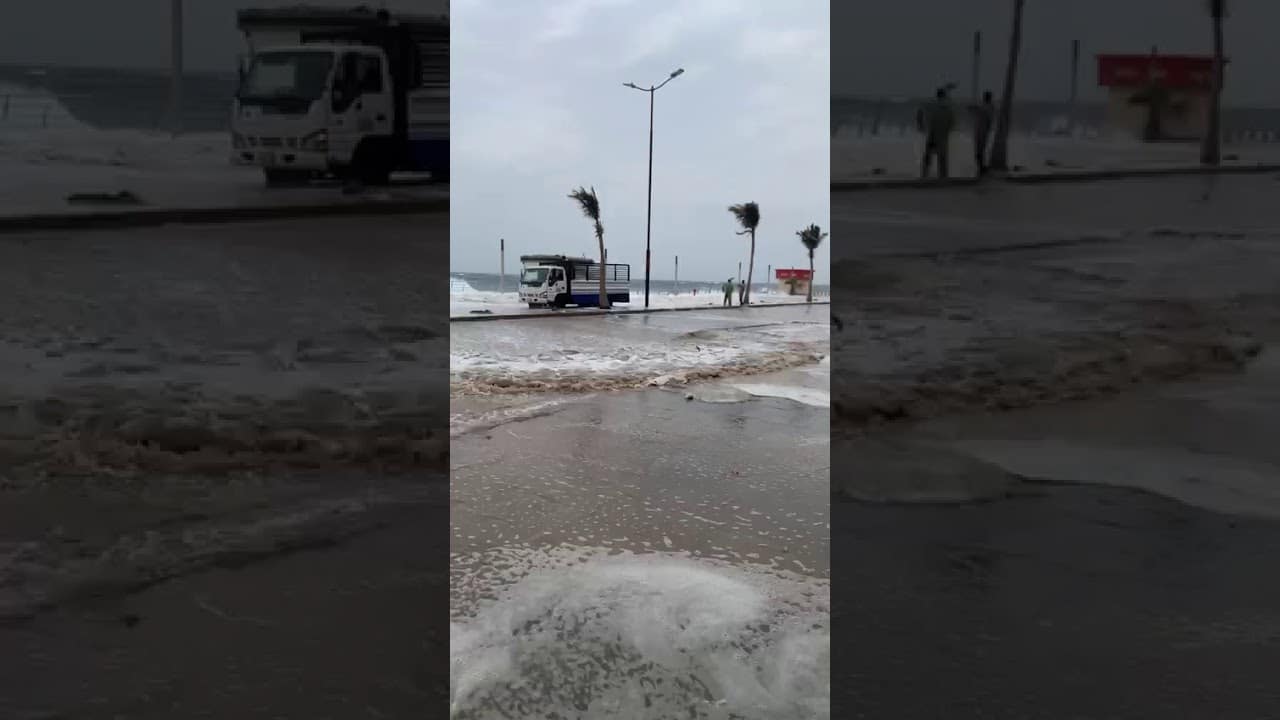 وتظهر المقاطع المتداولة لحظة اندفاع الأمواج تجاه حواجز الكورنيش الحديدية وتكسيرها، كما داهمت عدد من المطاعم وحطمت المقاعد والطاولات وسط وجود الزبائن في مشهد مرعب.