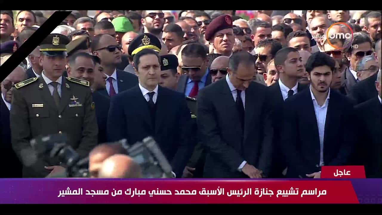 وكما رصدته وطن شُيّع ظهر أمس، جثمان مبارك الذي وافته المنية عن عمر يناهز 92 عاماً، من مسجد المشير حسين طنطاوي، بمشاركة رئيس الدولة، والرئيس المؤقت السابق عدلي منصور، ورئيس الوزراء مصطفى مدبولي، ورئيس البرلمان المصري علي عبد العال، وكبار رجال الأعمال ورموز دولة مبارك، الذين تقدمهم رئيس وزرائه أحمد نظيف، ورئيس مجلس الشعب السابق أحمد فتحي سرور، ورئيس ديوان رئيس الجمهورية زكريا عزمي، ورجلا الأعمال أحمد عز وهشام طلعت مصطفى.