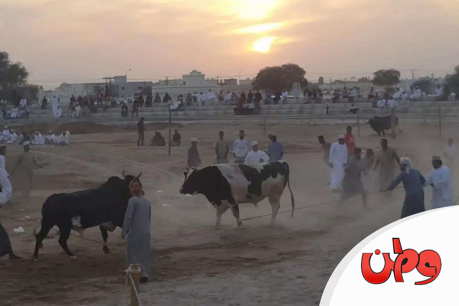 المذيع العُماني المعروف محمد المخيني، نشر عبر صفحته بتويتر فيديو خطير أظهر مناطحة للثيران وسط تجمهر شعبي.