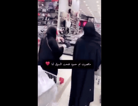 وكُتب على الفيديو تعليق: “ما قصرت أم حمود فتحت السوق لنا”، دون أن يتضح ما إذا كانت ملكية “السوق” تعود لأم حمود، أم أن لها “واسطة” لتستطيع فتحه لها ولصديقاتها.