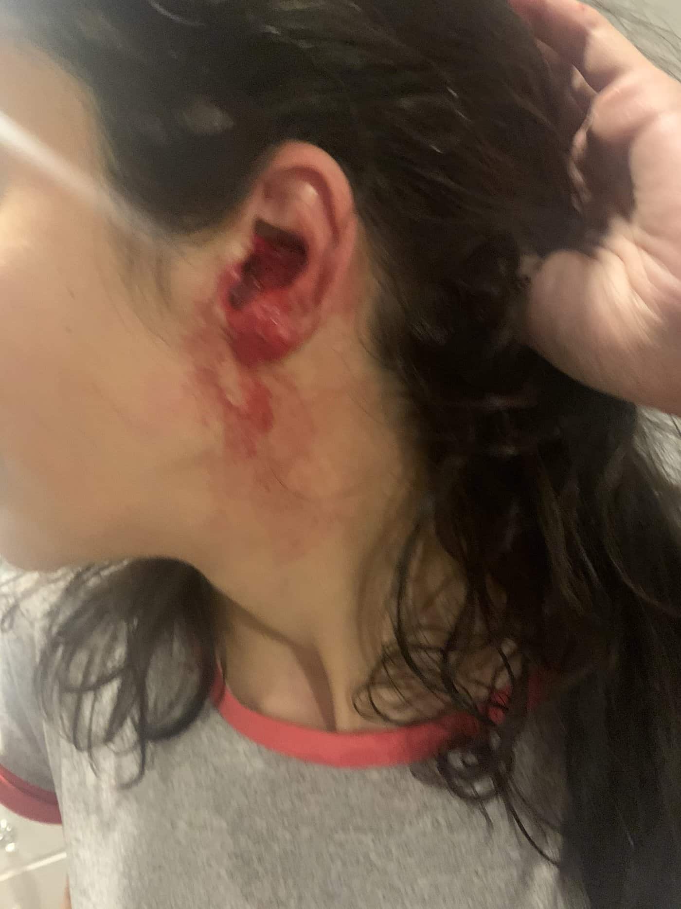 ونشرت بشاير صورة لأذن شقيقتها، وكتبت: ” قطع اذن اختي تو”.