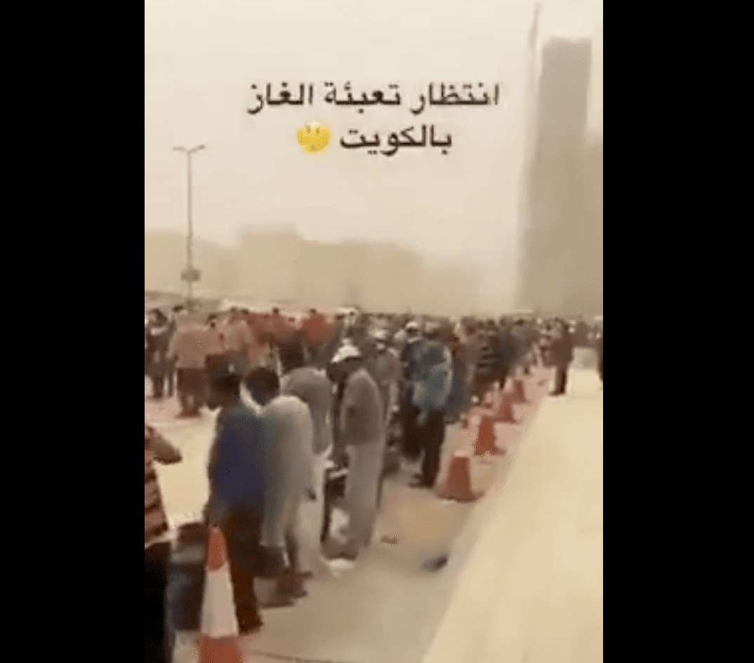 ويُظهر الفيديو طوابير طويلة من الوافدين -كما قال مغرّدون- بانتظار تعبئة اسطوانات الغاز الخاصة بهم، غير ملتزمين بتعليمات التباعد لمنع تفشي فيروس كورونا.
