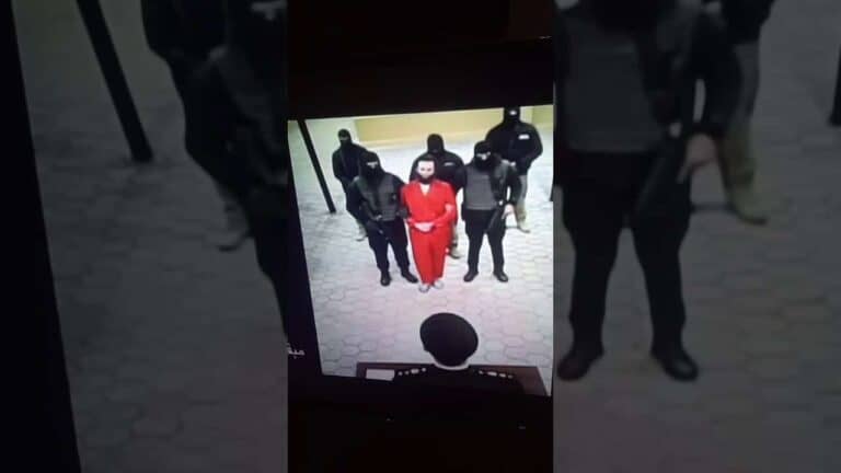 وحسب فيديو رصدته “وطن”، ظهر عشماوي في الفيديو وهو يرتدي البدلة الحمراء، حيث قال القاضي العسكري: “بتاريخ 27/ 11/ 2019.. حكمت المحكمة حضوريا وبإجماع الآراء على بمعاقبة المتهم هشام علي عشماوي مسعد إبراهيم بالإعدام شنقا نظير ما أسند إليه من قرار الاتهام”، ليسأله عايز تقول حاجة يا هشام، ليرد: “مبقاش ينفع خلاص”.