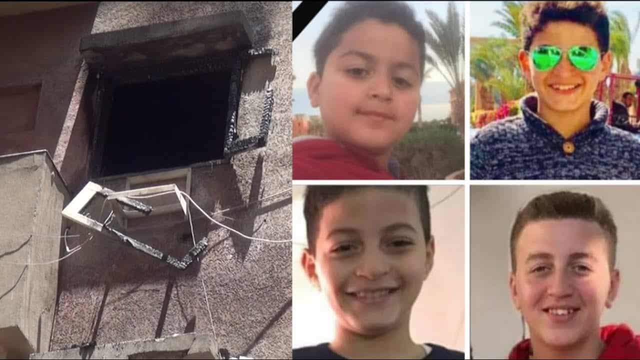 وتفحم من جراء الحريق، 4 من أبناء الطبيب محمد سعيد الجمال -استشاري أمراض القلب والأوعية الدموية-، تتراوح أعمارهم من 10 إلى 16 عاما وهم (أحمد وياسين وكريم ومالك).