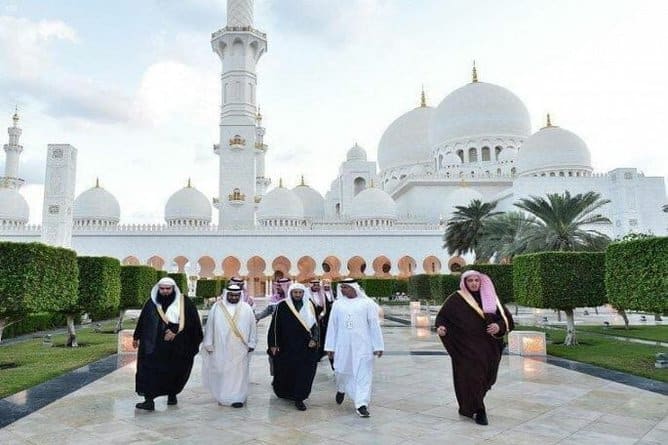 ودون ما نصه: “وأخيرا تحقق حلم سمو الشيخ محمد بن زايد في اقناع السعودية بالتحول الى الطريق التنويري برؤية عيال زايد، دفعة اولى من علماء السعودية علم السعودية في زيارة خاصة لضريح الشيخ زايد لأخذ الحكمة والبركة لهم ولبلادهم”