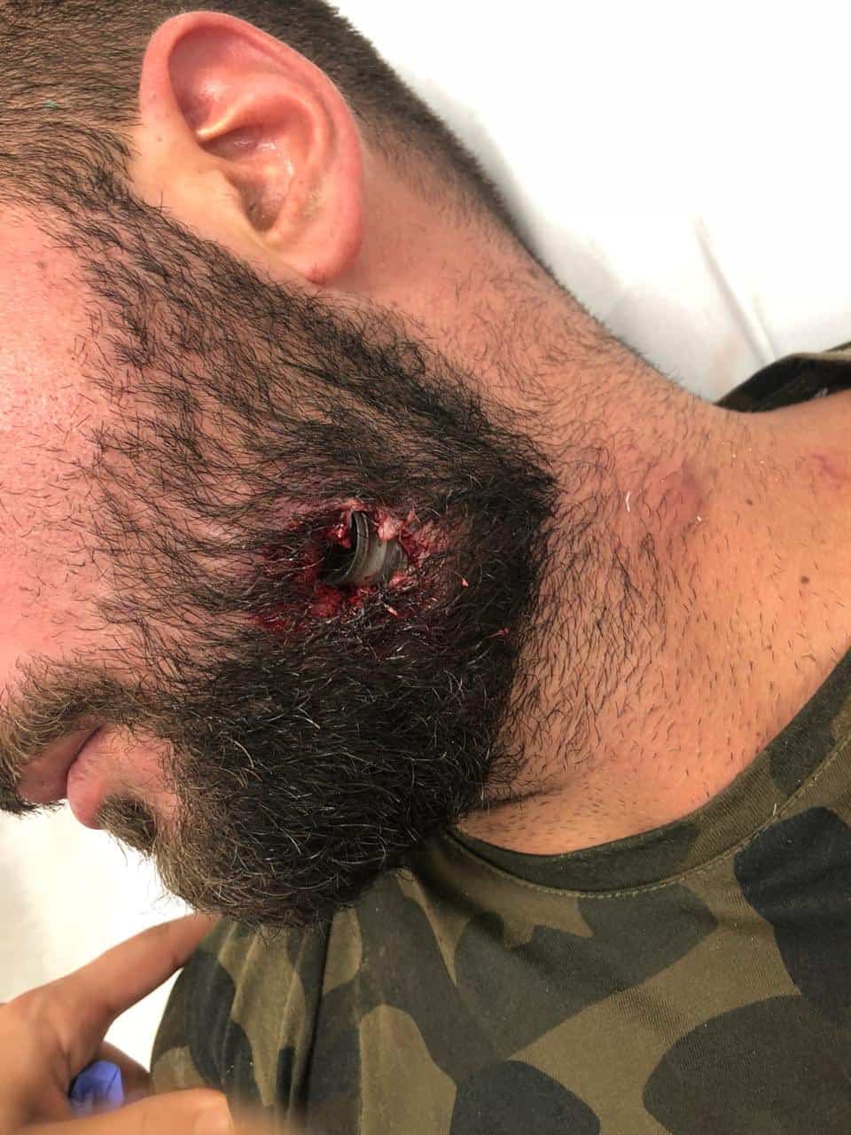 وأظهرت صور متداولة إصابة مباشرة في وجه أحد المتظاهرين حيث اخترقت رصاصة مطاطية وجهه في مشهد صادم ومؤلم.