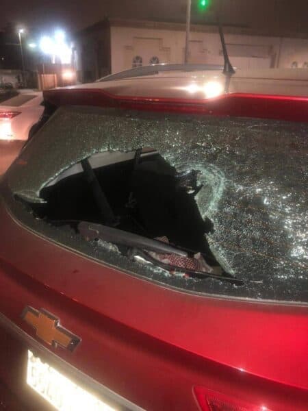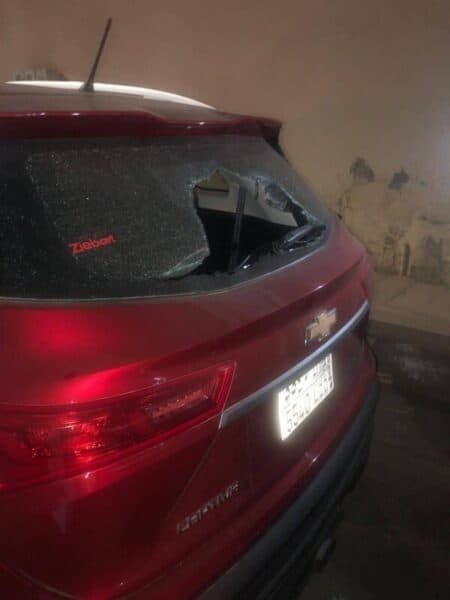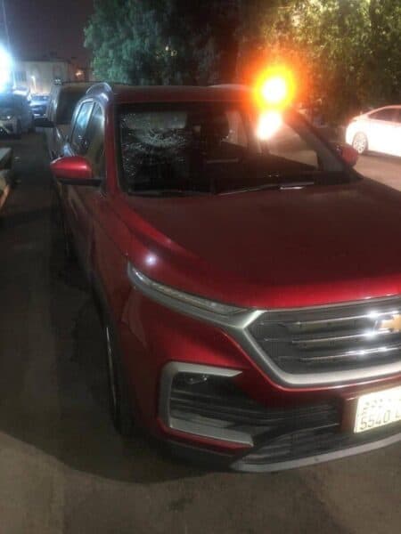 وفوجئ بالمعتدي يتلف إطارات سيارته ويهشمها وهو في حالة هستيرية غير معروفة الأسباب.