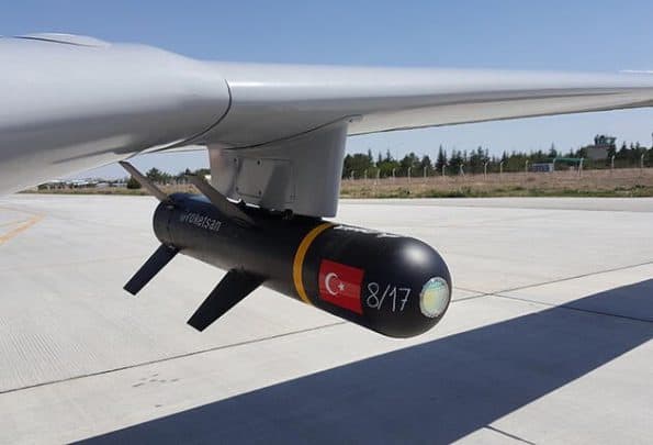 في الصورة أمامكم إحدى صواريخ طائرة بيرقدار التركية وهي صاروخ Mini A-M من انتاج شركة روكيتسان.