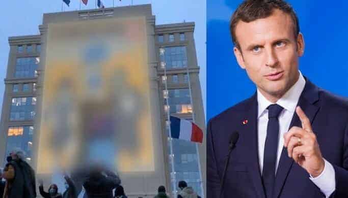 ولفت بعض النشطاء الى أن “القذارة” وصلت بفرنسا ورئيسها إلى حد رفع صور مسيئة للنبي محمد عليه السلام على البنايات الكبيرة.