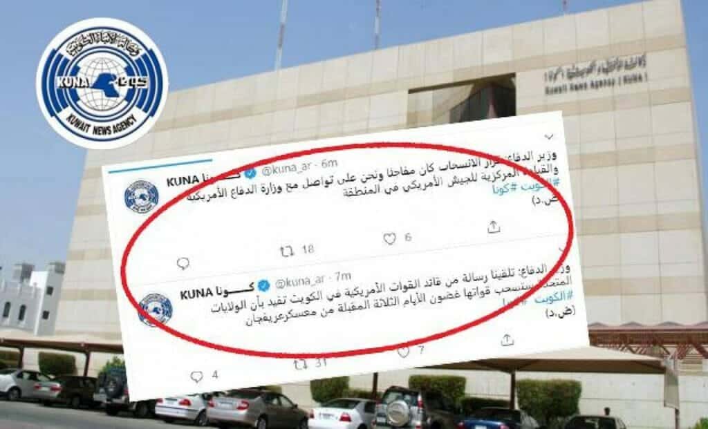 جديرٌ بالذّكر أن وكالة الأنباء الكويتية الرسمية “كونا” نفت في حينه. الخبر المتعلق بعزم القوات الأميركية الانسحاب من أحد المعسكرات في الكويت، مشيرةً إلى أن موقعها على تويتر تعرض للاختراق.