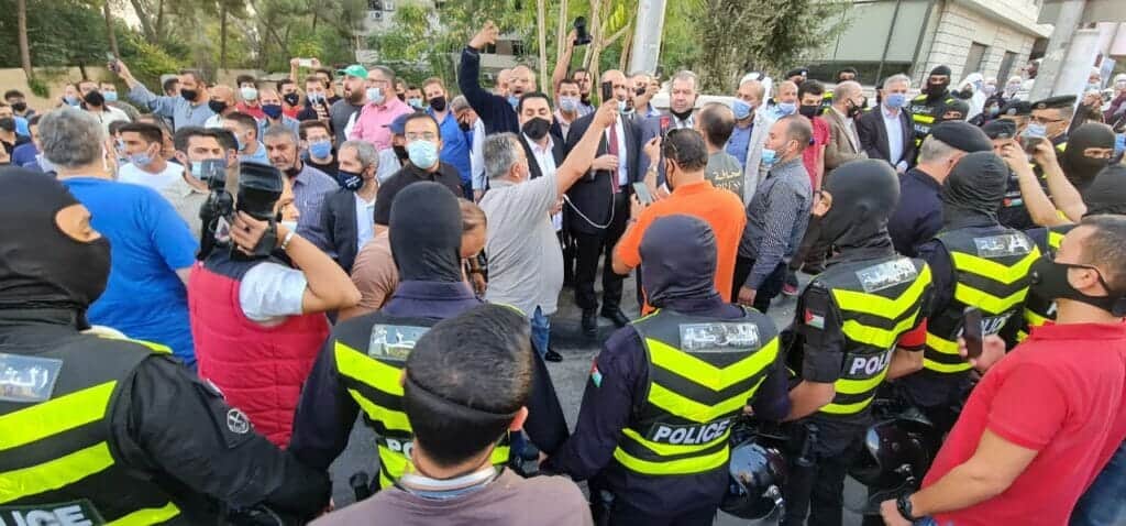 هذا وشهد محيط السفارة الفرنسية في العاصمة عمان تواجدا أمنيا كثيفا بعد ارتفاع أعداد المعتصمين.