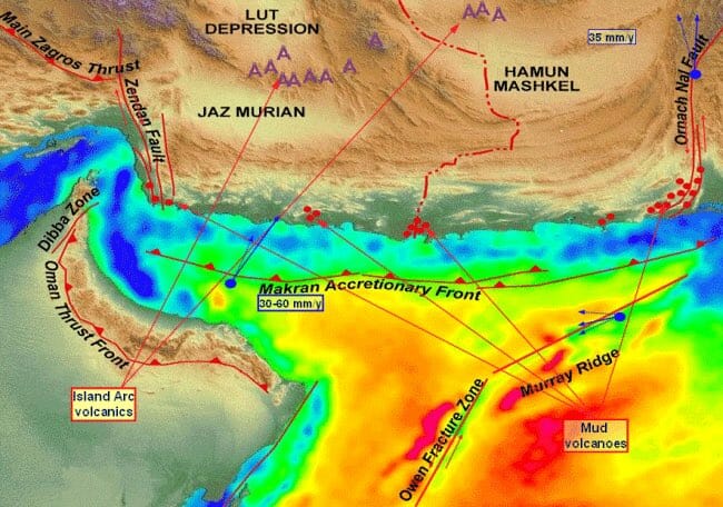 وأشار الدكتور إلى أن صدع مكران ينقسم إلى قسمين؛ الأول شرقي وهو الأطول والأكثر نشاطًا وتحدث معه الزلازل الكبرى، أما الجزء الغربي من صدع مكران وهو الأقصر والأقل نشاطًا، ولم يسبب زلازل كبيرة قديمًا أو حديثًا.