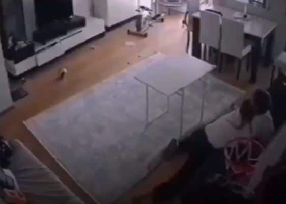 ويظهر الفيديو، الذي رصدته “وطن” صراخ الطفل واحتضان أمه له في محاولة تهدئته بينما يهتز منزل العائلة جراء الزلزال، في لحظات قاسية مرت عليهم.