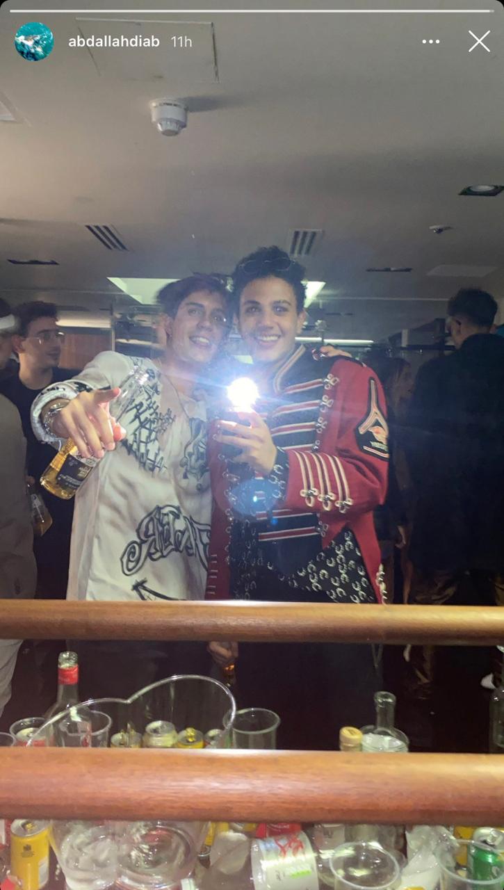 وتكشف الصورة التي نشرها عبدالله عمرو دياب عن وجوده الى جانب أحد اصدقائه ومن خلفهم فتيات وشبان، وظهر يحمل زجاجة بيرة في يده، وأمامهم طاولة عليها زجاجات وعلب خمور .